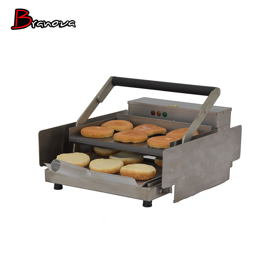 Bun toasters are used to heat burger buns to a pleasant serving temperature and enhance their flavor. High temperatures in a short time bring out the aroma of the ingredients inside the bun while preventing excessive moisture loss, so the product smells appetizing and tastes moist yet light.